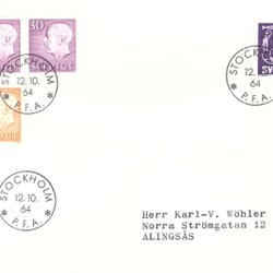 Sverige: FDC 1964 Privat Nossebro. GVIA o Tre kronor o Siffertyp. Bra skick.