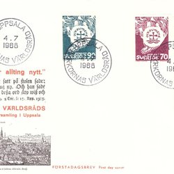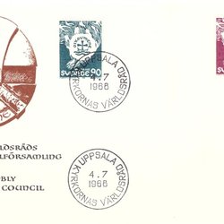 Sverige: FDC 1968 vinjett 1. Kyrkornas Världsråd. Bra skick.