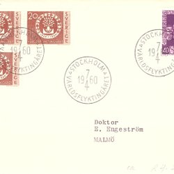 Sverige: FDC 1960 Vinjett 2. Världsflyktingåret 1959-1960. Se bild.