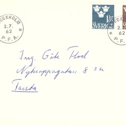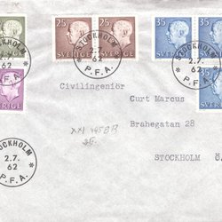 Sverige: FDC 1962 Privat kuvert. Gustaf VI Adolf. Bra skick.