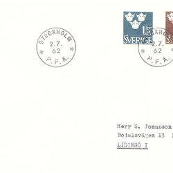 Sverige: FDC 1962. Tre Kronor, Ny siffertyp II. Bra skick.