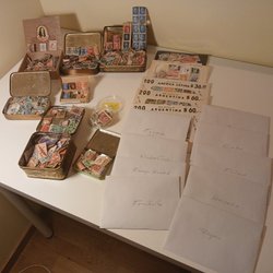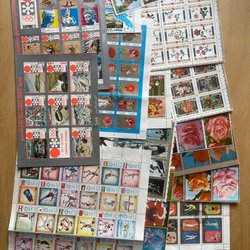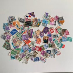Samling frimärken osorterade