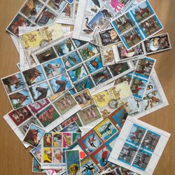 Frimärken med blandade motiv, bl.a. Disney, Princess Diana & Charles