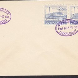 SVERIGE - 1945. NORRKÖPINGS LOKALPOST. 8 ÖRE Första dagen 12-3-45.