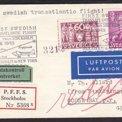 1945- FLYGPLAN - FÖRSTA SVENSKA TRANSOCEANISKA FLYGTUREN STOCKHOLM TILL NEW YORK
