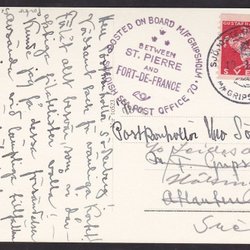 1933. Upplagt på bord M/S Gripsholm mellan ST. PIERRE och FORT-DE-FRANCE