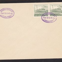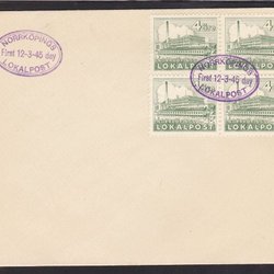 SVERIGE - 1945. NORRKÖPINGS LOKALPOST. 4 ÖRE Första dagen 12-3-45.