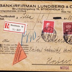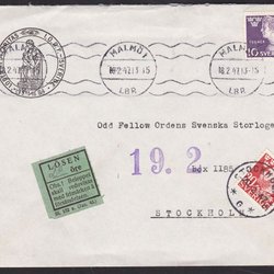 1960. LÖSEN 20 öre på brev. Stämplat STOCKHOLM 20.2.47.