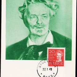 1949. AUGUST STRINDBERG 20 ÖRE STOCKHOLM 22.1.49. MAXICARD.