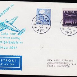 1946. NORD MISSIONSFLYG 1:a tur Med direkt postflyg SVERIGE - SYDAFRIKA