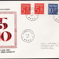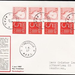 1957. FDC STOCKHOLM 1.6.57. 5x 15+5 ÖRE.