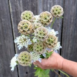 Stjärnvädd, ettårig, höjd ca 60 cm, blommar juli-sept, 20 frön