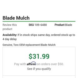 NYA! Blad till gräsklippare Toro 16,5" HI FLOW 133-2137 ***REA***