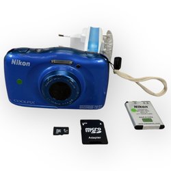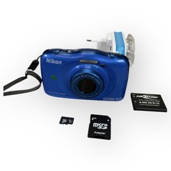 Nikon Coolpix S33 Digitalkamera 13MP 3x Zoom Vattentät Blå SD Kort Batteri
