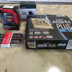 Asus moderkort komplett med AMD processor, minnen och fläkt.