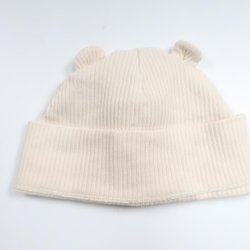 Ribbad mössa med öron från H&M - Storlek 74/80 - Benvit