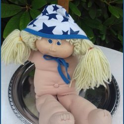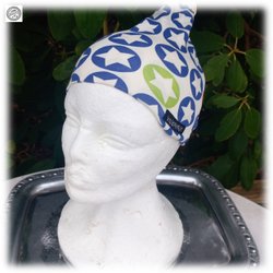 Vit babymössa med stjärnor blå med knyte Eco organisk bomull Utmärkt skick