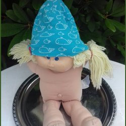 Mössa i trikå i dubbla tyger roliga figurer utmärkt skick