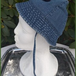 Solhatt i denim 60-70-tal Retro patchworkmönstrad, Barn ca 52 cm innermått