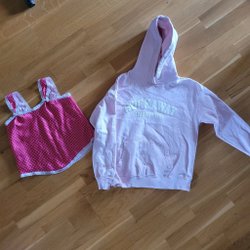 Rosa Hoodie och Rött Linne