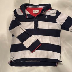 Mörkblå/vit-randig tröja med krage strl 98/104
