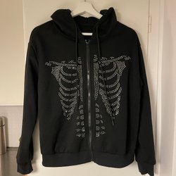 Svart hoodie, Halloween, skelett, 152
