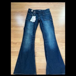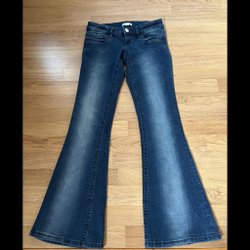 Blå jeans bootcut mid waist, strl 146 - knappt använda