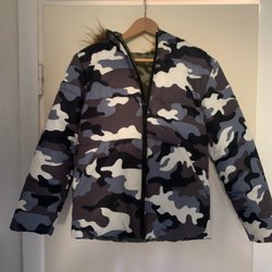 Camouflagefärgad vändbar jacka