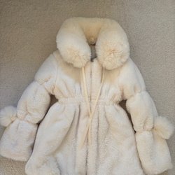 Fin H&M fuskpäls jacka vit storlek 134