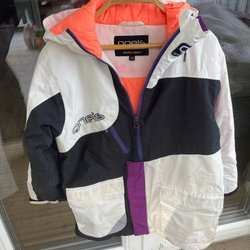 Oneis vit, svart, lila, orange jacka, storlek 122