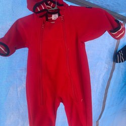 Polarn o. Pyret röd fleece overall, storlek 62 .