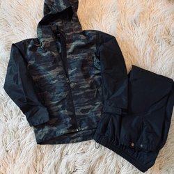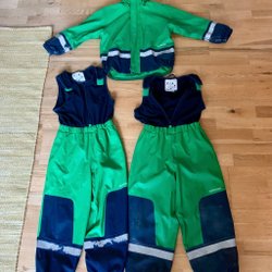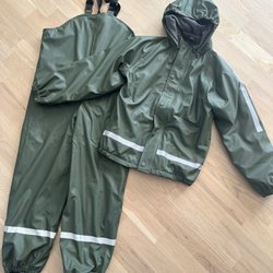 157 Funk grön svart regnoverall, storlek 100
