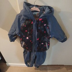 Polarn O. Pyret blå regnjacka i galon, storlek 74/80