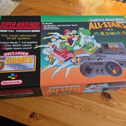 Snes Super Mario All-Stars låda med frigolit