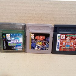 Tre Game Boy spel: Dance Dance Revolution, Yu-Gi-Oh! och ett annat spel