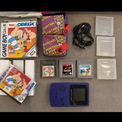 • Game Boy Color-konsoler i olika färger, från den ikoniska lila till mer exklusiva specialutgåvor.