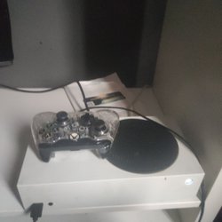 Xbox One S med två handkontroller och spel