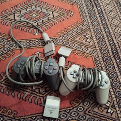 2 st Playstation 1 Kontroller och ett Minneskort