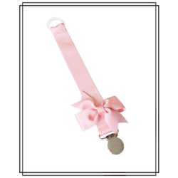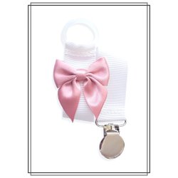Vit napphållare med blekrosa rosett och vitt clip dop doppresent