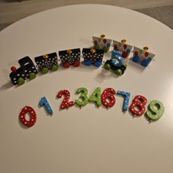 Födelsedagståg i trä med siffror