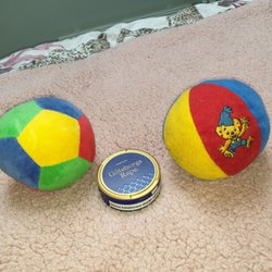 Mjuka färgglada pigelljud bollar bebis,1med Bamsemotiv 1 bara färg,se annons
