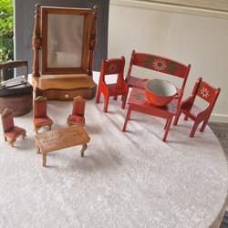 Ett dockskåp är inte komplett förrän det är inrett med små söta dockmöbler. Bland annonserna på Tradera har man möjlighet att hitta alltifrån stolar, bord och sängar till lampor, trasmattor och speglar i miniformat. Köp möbler till dockhus second hand och gör en bra sak för plånbok och miljö!