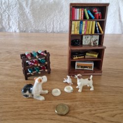 Hylla med lådor och vaser till dockskåp skala 1:18