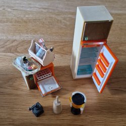 Lundby köks möbler med tillbehör och Dockor
