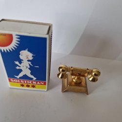 Miniatyr metalltelefon i mässing – vintage dekorativ figur ca 4×3 cm