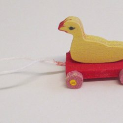 Leksak draganka i trä på hjul till dockskåp