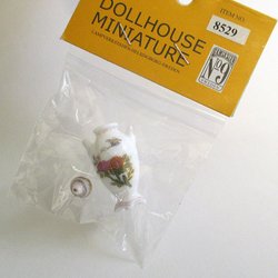 Vas med lock i porslin till dockskåp