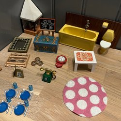 Smycken till dockskåp, oanvända i förpackning