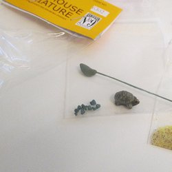 Glasskål, sand, sköldpadda m m till dockskåp, oanvänt i förpackning