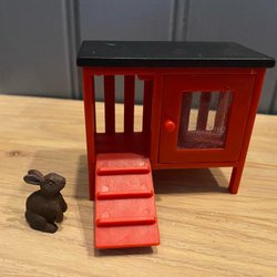 Kanin i korg till dockskåp, ny i förpackning